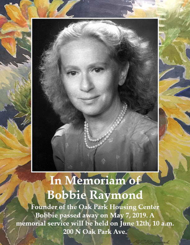 “Bobbie Raymond was a radical thinker and doer. Oak Park does not exist as it does today without Bobbie Raymond. Period. At a time in the late 1960s and into the early 1970s when Oak Park was inventing a range of radical responses to ward off what was anticipated to be the likely resegregation of Oak Park — following immediately on the rapid resegregation of the West Side — Bobbie Raymond invented something in the Housing Center that I don’t think anyone else even understood the need for. That was her genius and her vision in that moment. Oak Park would not have found a path to racial integration without the Housing Center.