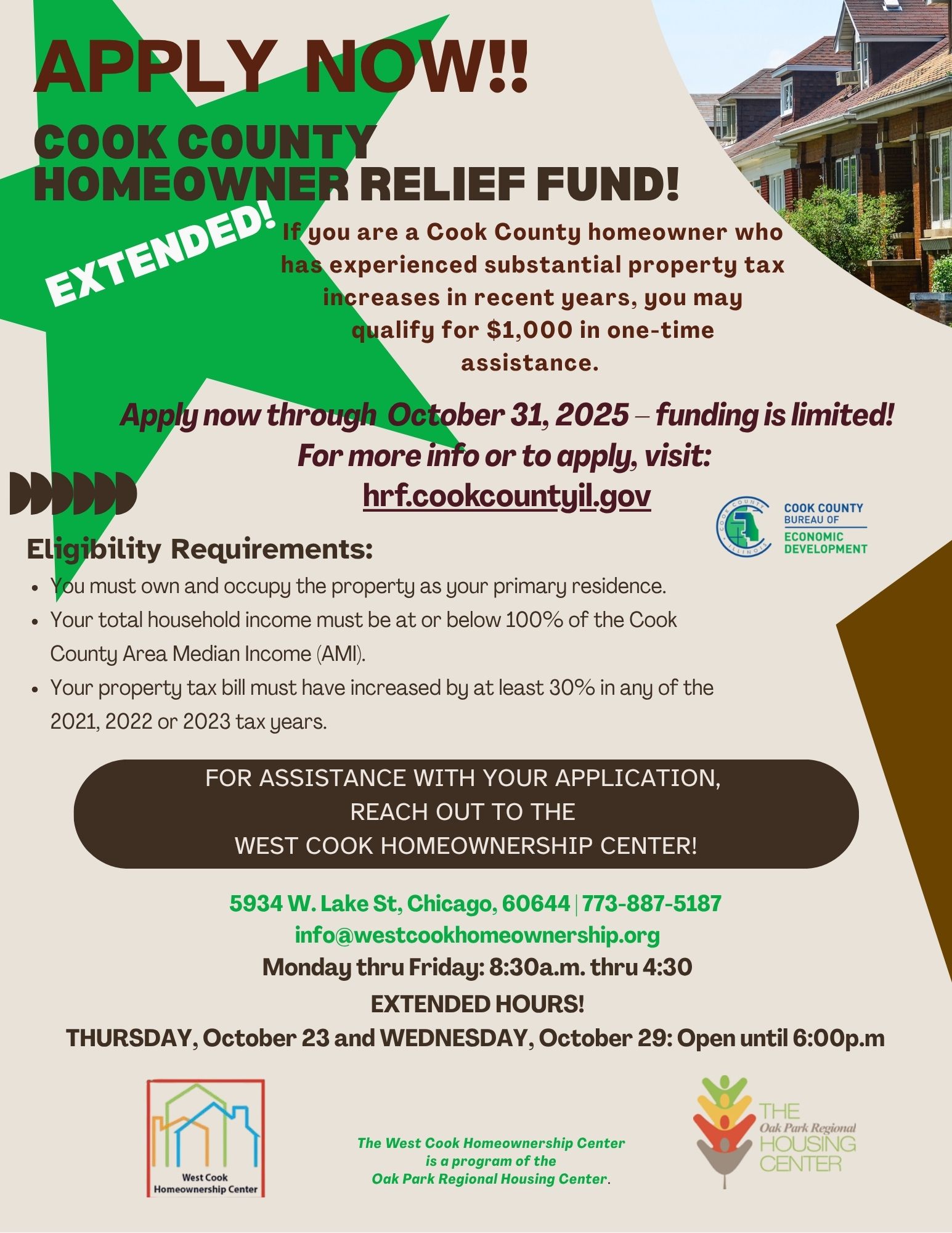 For more info or to apply, visit: hrf.cookcountyil.gov